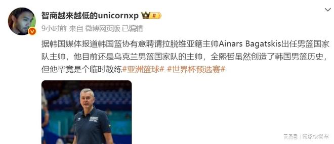 不过,颇为尴尬的是,作为输球的一方,暂时还没有任何关于郭士强的消息,反倒是率领韩国队两次击败中国,作为韩国队的临时救火英雄,也是郭士强的苦主全熙哲。他在这一次男篮世预赛结束后,或许将黯然下课。作为韩国队的临时主教练,全熙哲虽然带领韩国队创造了历史。不过,韩国篮协方面,他们目前已经考虑聘请拉脱维亚名帅艾纳尔斯-巴加茨斯基,出任韩国队主教练一职。