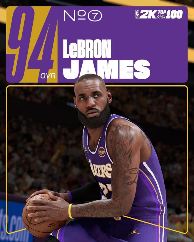 其中,在湖人队方面,勒布朗-詹姆斯的评分由赛季初始分94(全联盟第七高)降低2分至92分。据统计,这是詹姆斯职业生涯自2K5以来的2K最低评分。